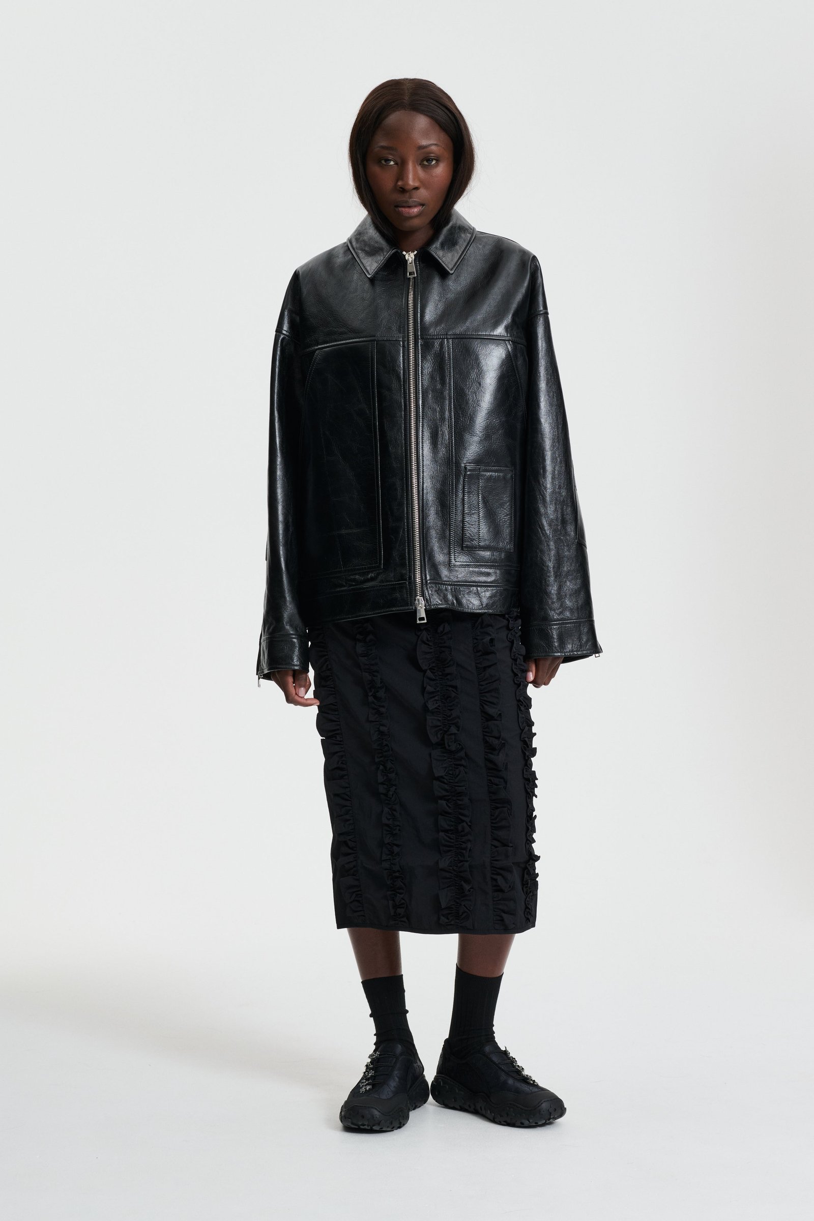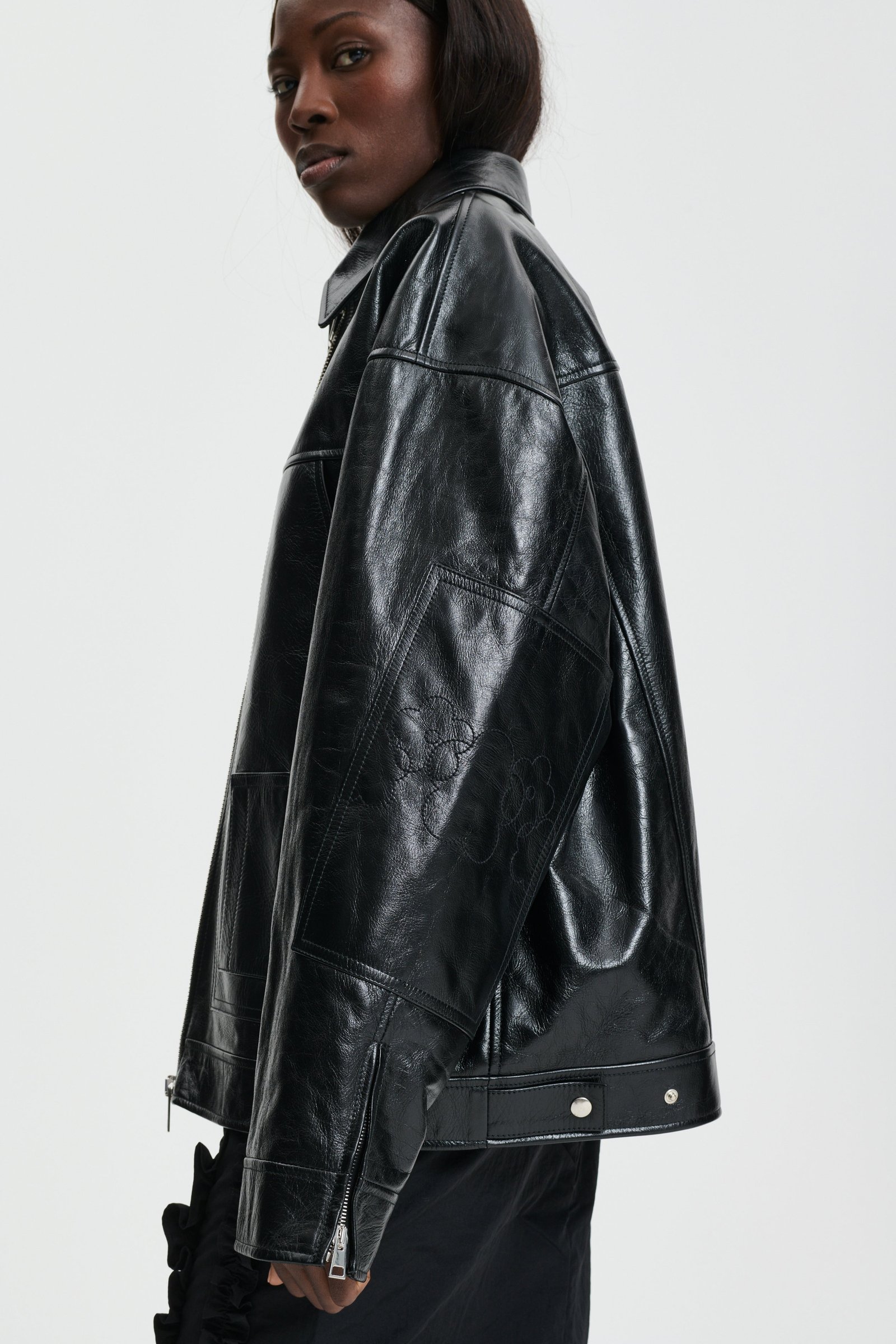 Professional leather dry clean is strongly recommended. If needed, clean with dry cloth and avoid contact with light-colored textile. Keep dry and hang in shades. Any leather cream is not recommended.